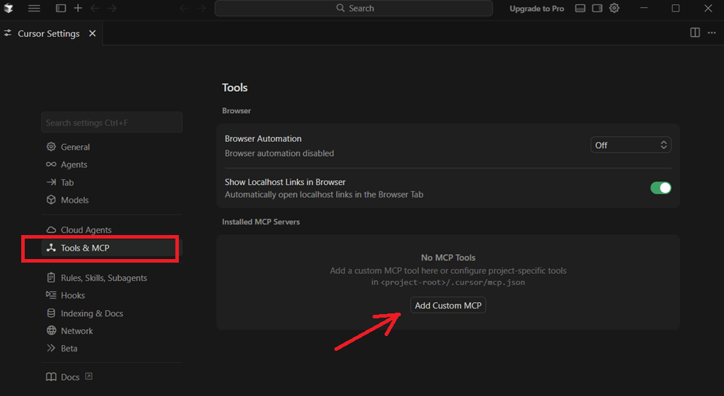 • Go to "Tools & MCP" -> "Add Custom MCP"